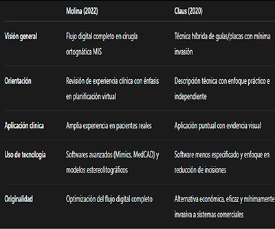 Se aborda la evolución de la cirugía ortognática que está fuertemente marcada por la implementación de tecnologías digitales que permiten planificación tridimensional precisa, personalización de dispositivos quirúrgicos y ejecución mínimamente invasiva de los procedimientos.